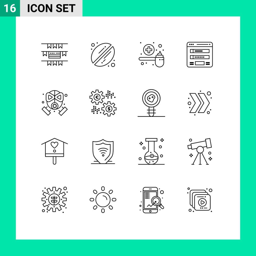 Set of 16 Vector Outlines on Grid for firefighter web measuring sitemap form Editable Vector Design Elements