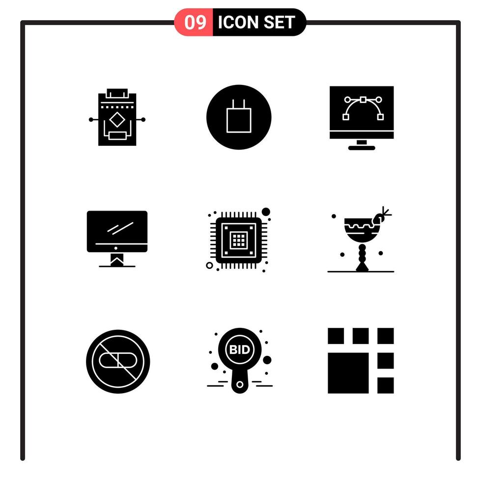Modern Set of 9 Solid Glyphs Pictograph of chip imac design and coding device computer Editable Vector Design Elements