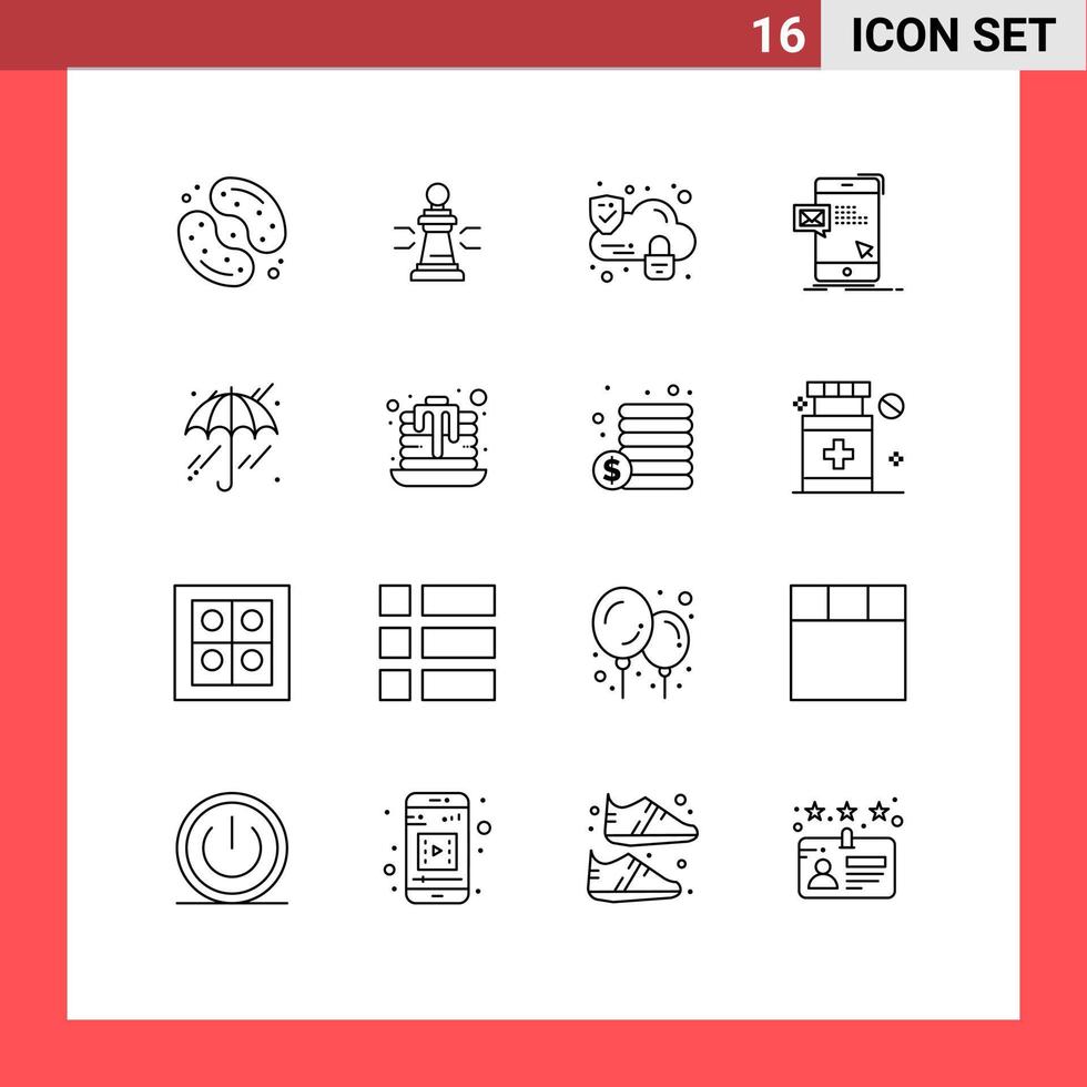 Pictogram Set of 16 Simple Outlines of instant bulk figures security cloud Editable Vector Design Elements