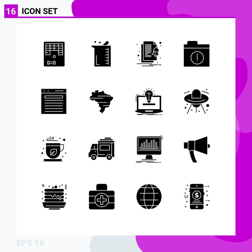 User Interface Pack of 16 Basic Solid Glyphs of find folder laboratory files notify Editable Vector Design Elements Free Vector
