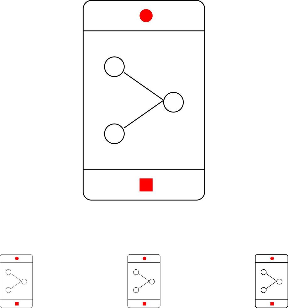 App Share Mobile Mobile Application Bold and thin black line icon set vector