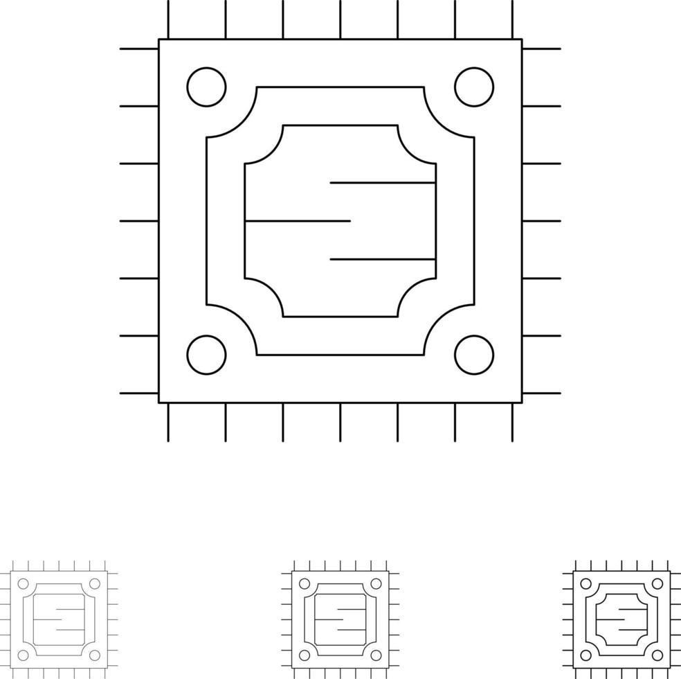 Cpu Microchip Processor Bold and thin black line icon set Free Vector