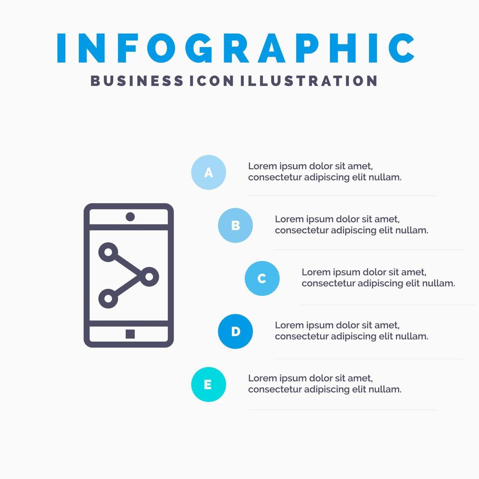 App Share Mobile Mobile Application Line icon with 5 steps presentation infographics Background Free Vector