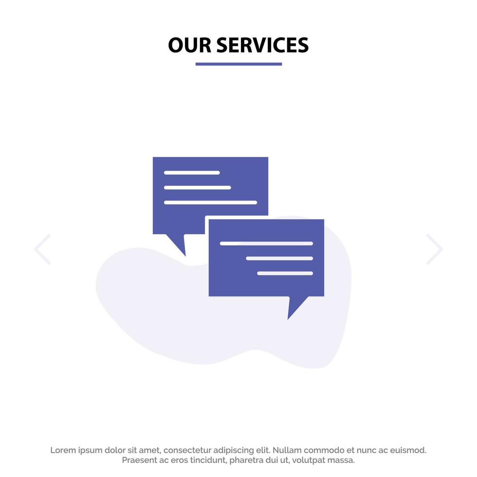 Our Services Sms Message Popup Bubble Chat Solid Glyph Icon Web card Template vector