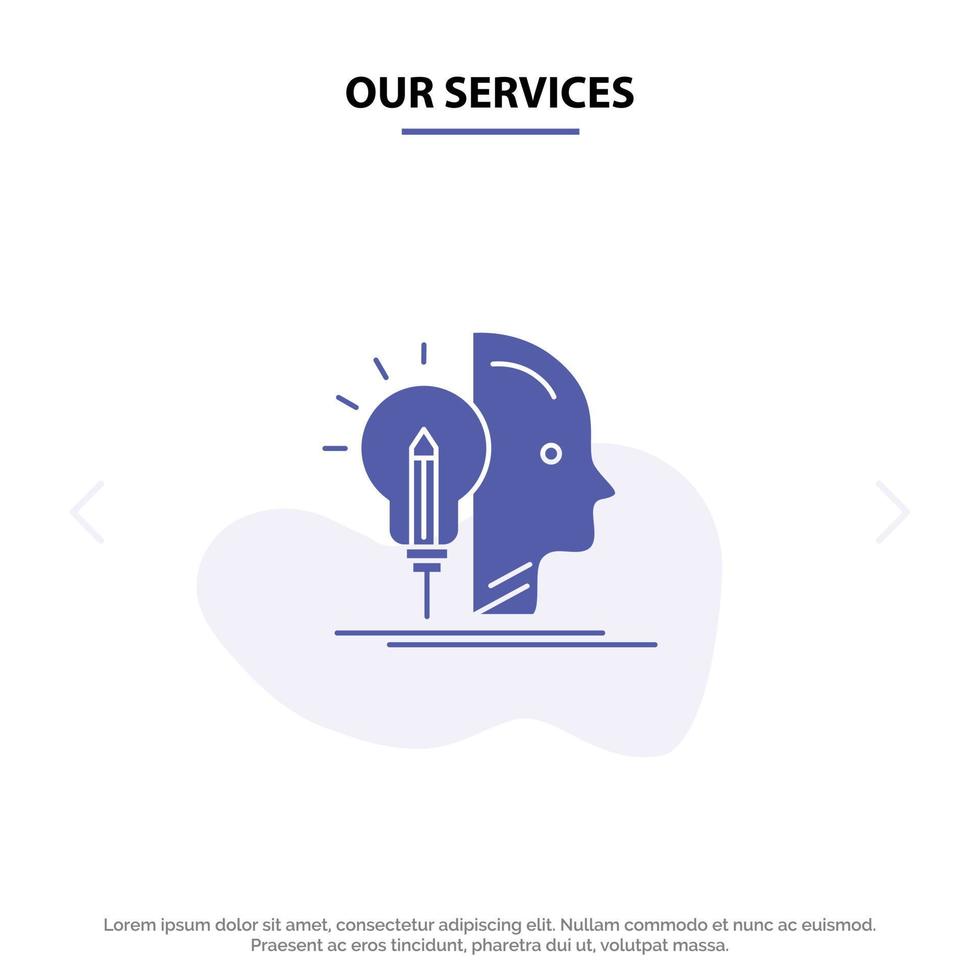 Our Services User Mind Making Programming Solid Glyph Icon Web card Template vector