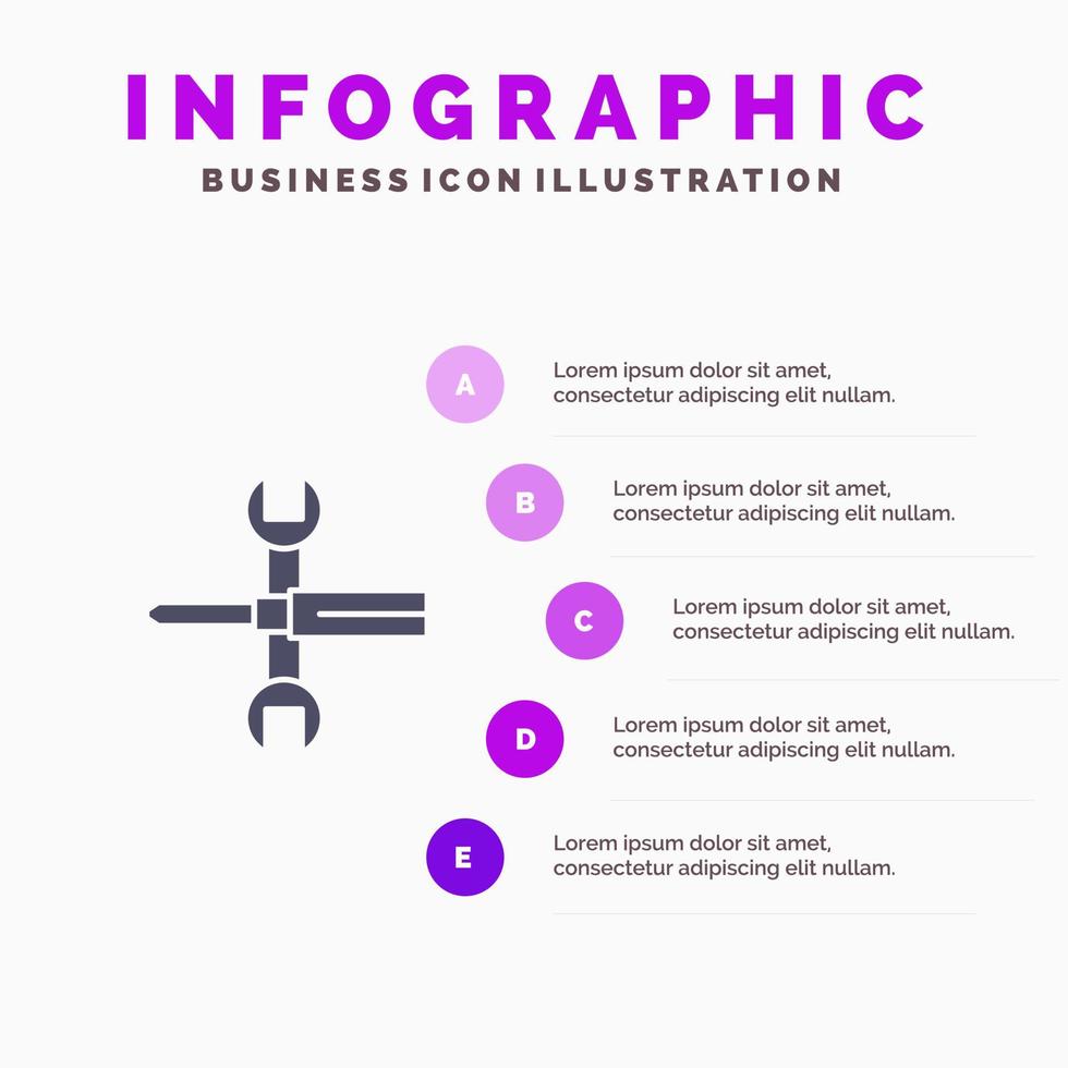 Settings Controls Screwdriver Spanner Tools Wrench Solid Icon Infographics 5 Steps Presentation Background vector