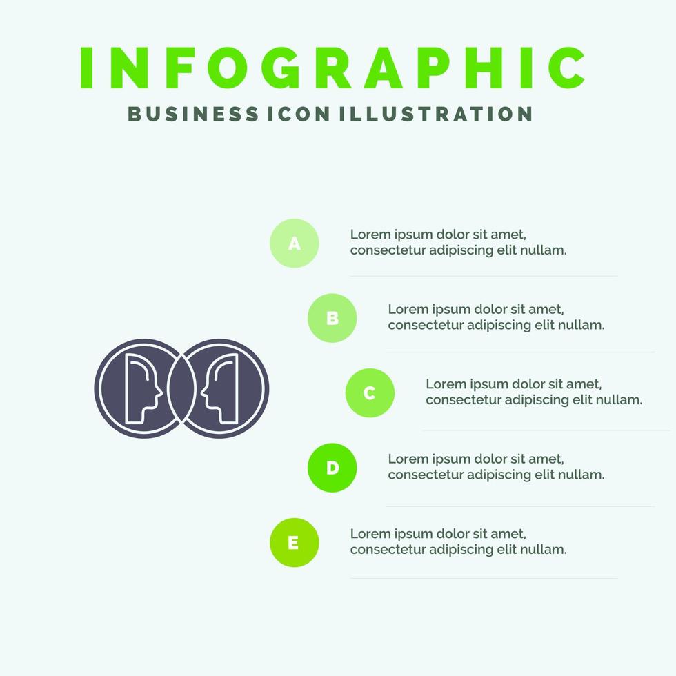 Coin Face Dual Duplicate Man Solid Icon Infographics 5 Steps Presentation Background vector