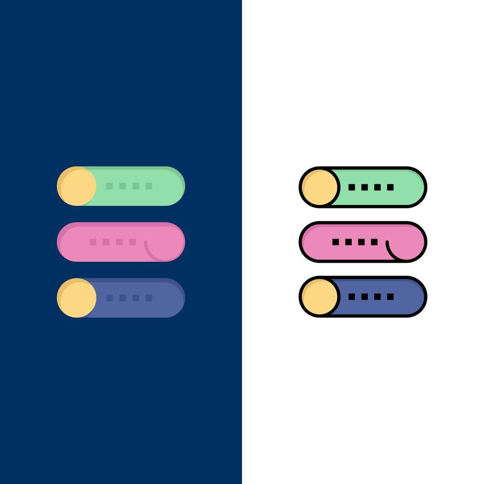 Setting Device Switch On Off  Icons Flat and Line Filled Icon Set Vector Blue Background