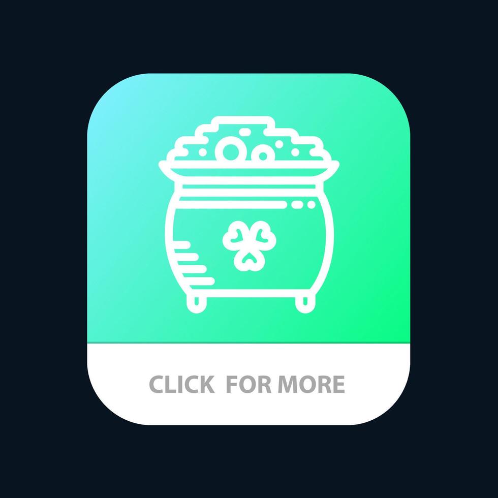 Clover Coin Gold Pot St Patrick Mobile App Button Android and IOS Line Version Free Vector