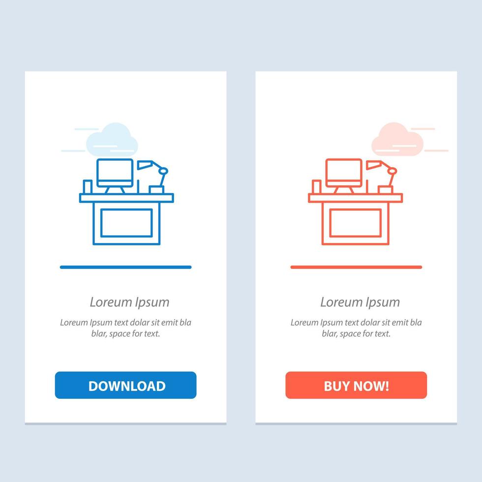 Computer Desk Desktop Monitor Office Place Table  Blue and Red Download and Buy Now web Widget Card Template vector