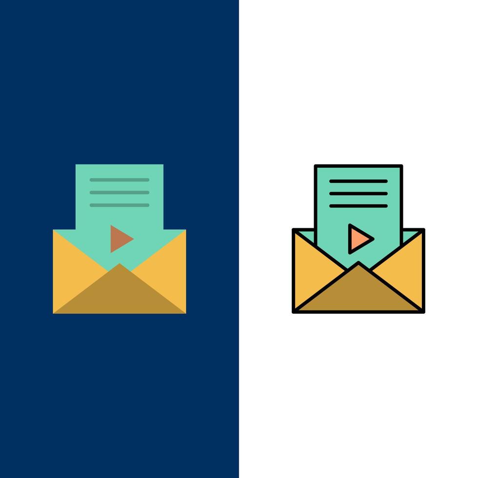 Mail Message Sms Video Player  Icons Flat and Line Filled Icon Set Vector Blue Background
