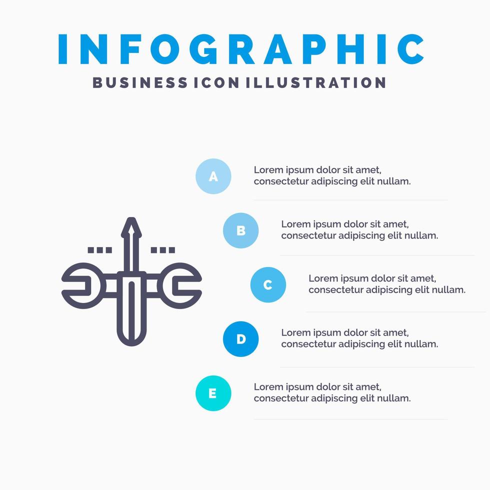 Cloud Computing Screwdriver Tooling Blue Infographics Template 5 Steps Vector Line Icon template Free Vector