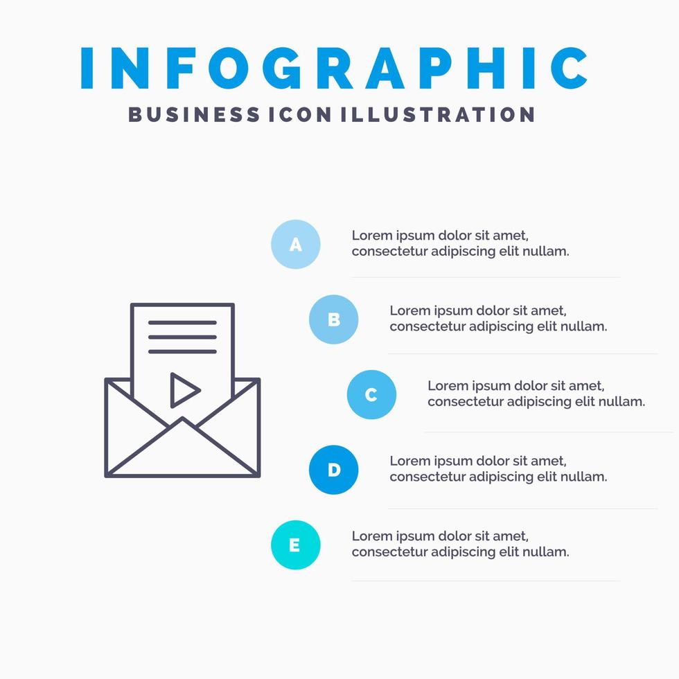 Mail Message Sms Video Player Line icon with 5 steps presentation infographics Background vector