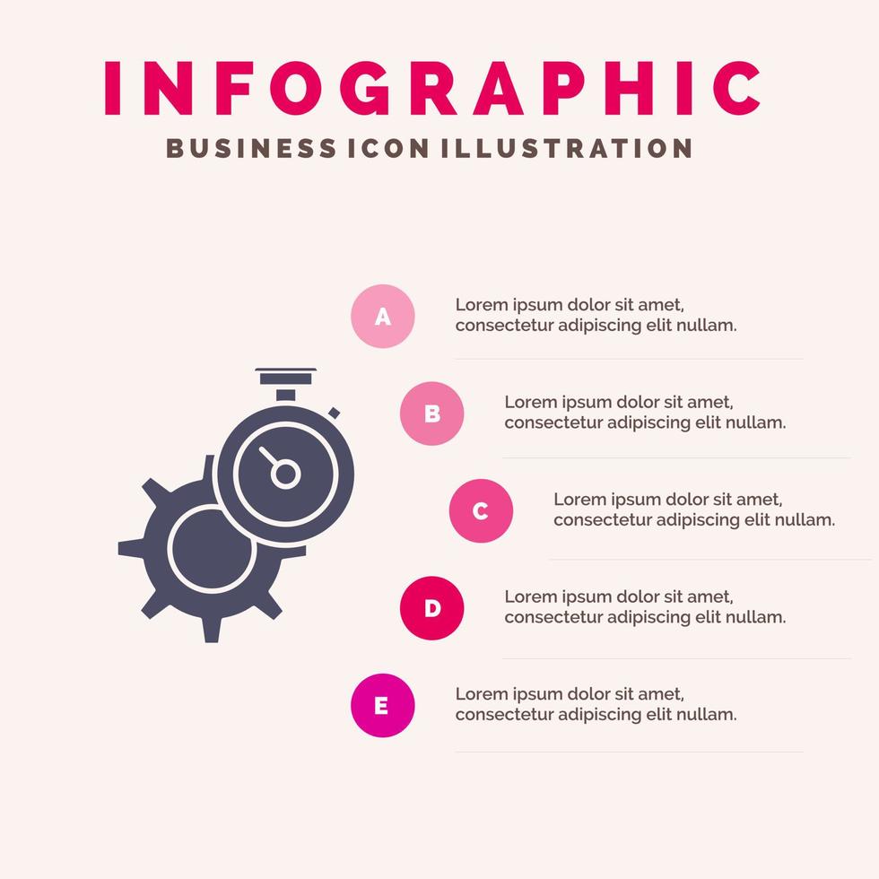 Timer Time Gear Setting Watch Solid Icon Infographics 5 Steps Presentation Background vector