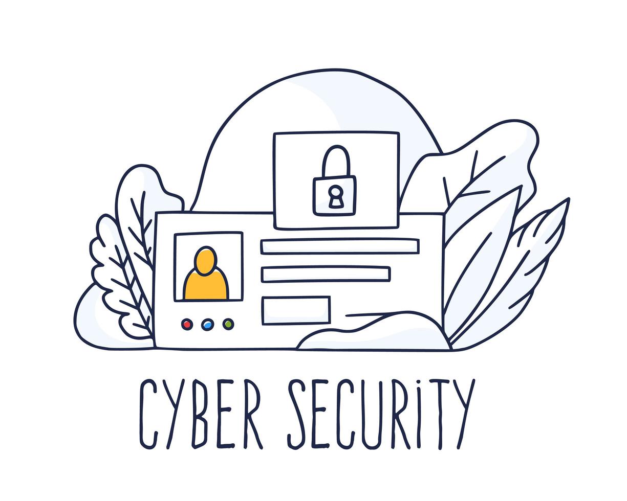 Cyber security concept. Online data protection internet security concept with personal ID doodle horizontal isolated copy space. Pro Vector