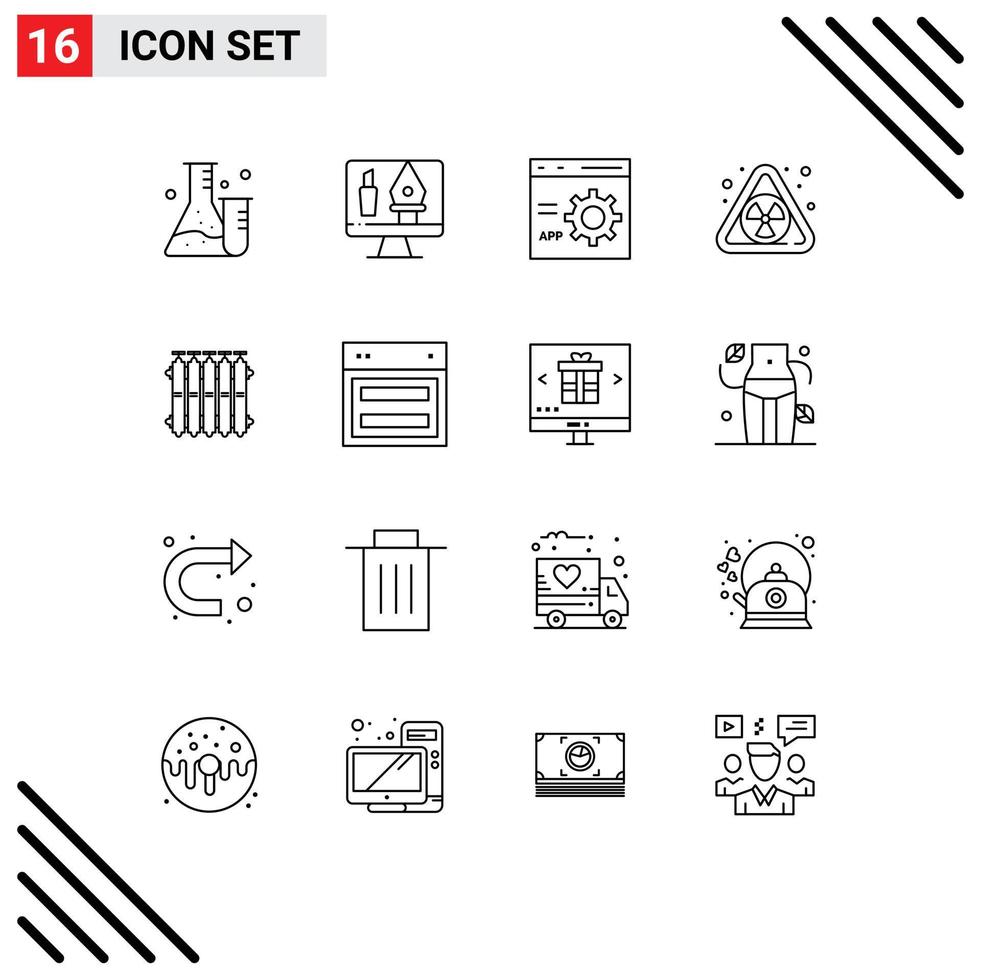 Modern Set of 16 Outlines Pictograph of heating waste browser pollution programming Editable Vector Design Elements