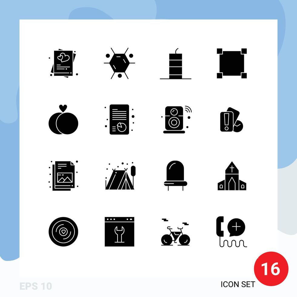 Set of 16 Vector Solid Glyphs on Grid for rings rectangle bang points terrorism Editable Vector Design Elements
