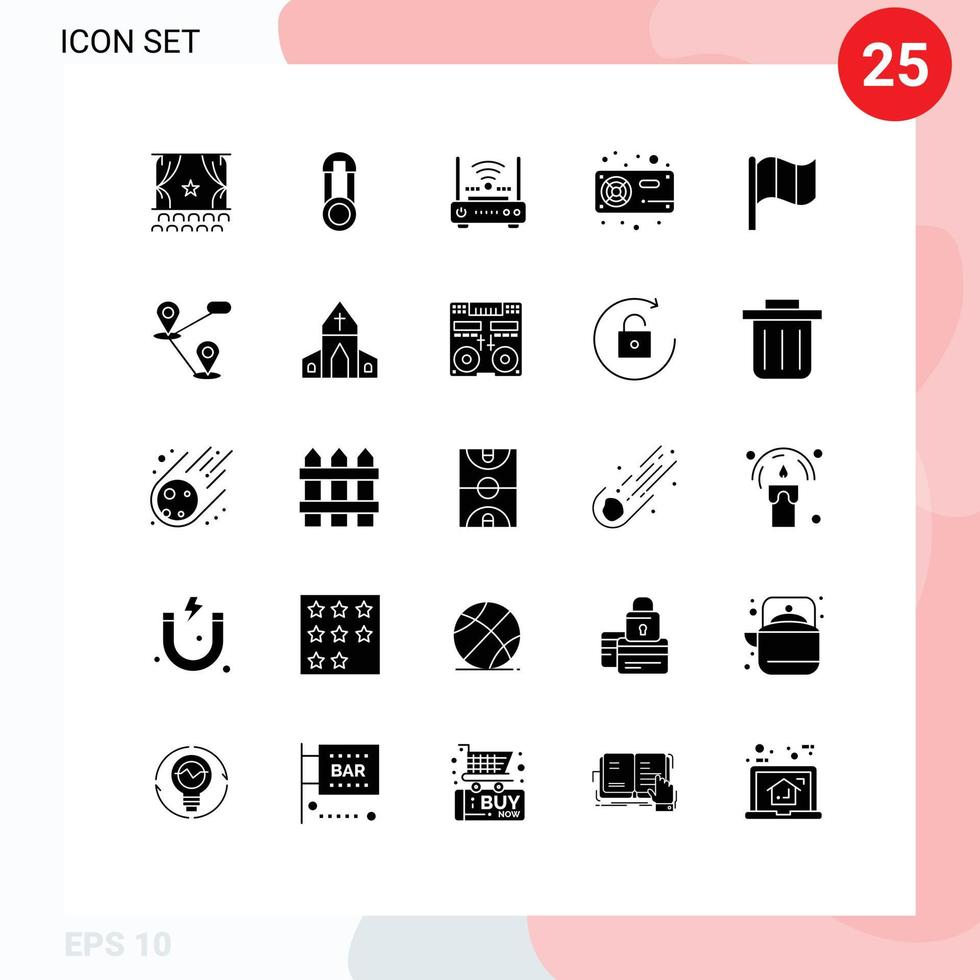 Mobile Interface Solid Glyph Set of 25 Pictograms of radiator fan safety computer internet Editable Vector Design Elements Free Vector