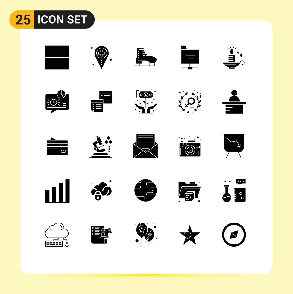 Modern Set of 25 Solid Glyphs and symbols such as love server boot folder skating Editable Vector Design Elements