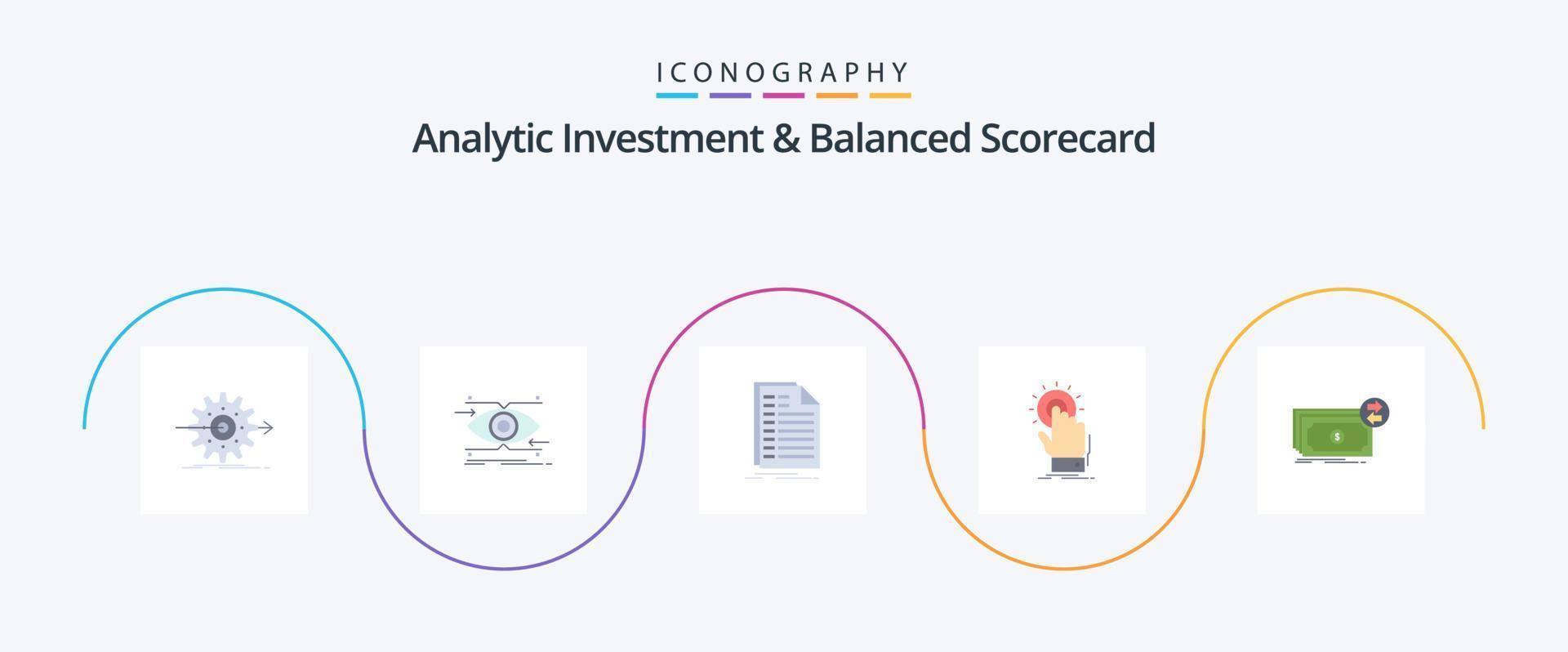Analytic Investment And Balanced Scorecard Flat 5 Icon Pack Including click. statement. focus. invoice. excel Free Vector