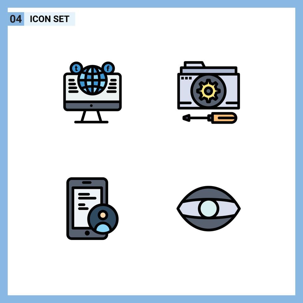 Stock Vector Icon Pack of 4 Line Signs and Symbols for website tools social media folder secure Editable Vector Design Elements Free Vector