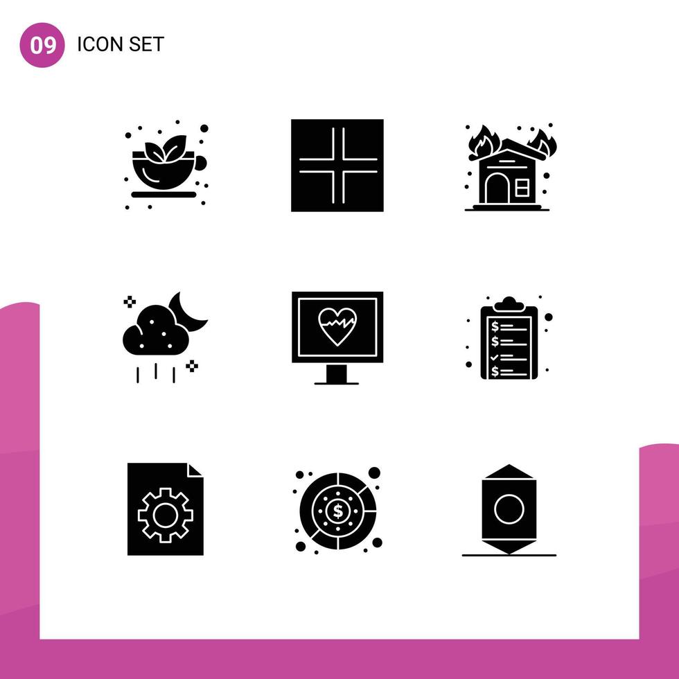 Set of 9 Modern UI Icons Symbols Signs for monitor weather fire ui cloud Editable Vector Design Elements