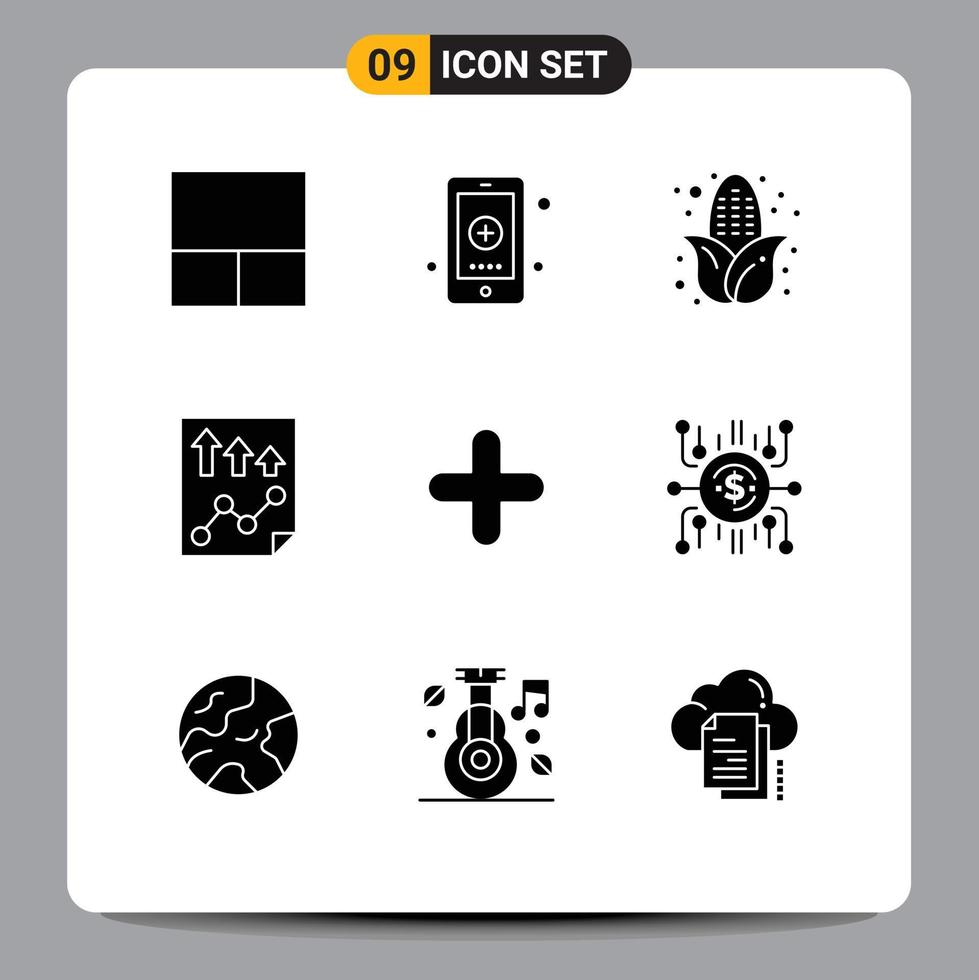 9 User Interface Solid Glyph Pack of modern Signs and Symbols of plus add corn report page Editable Vector Design Elements Free Vector and Free SVG