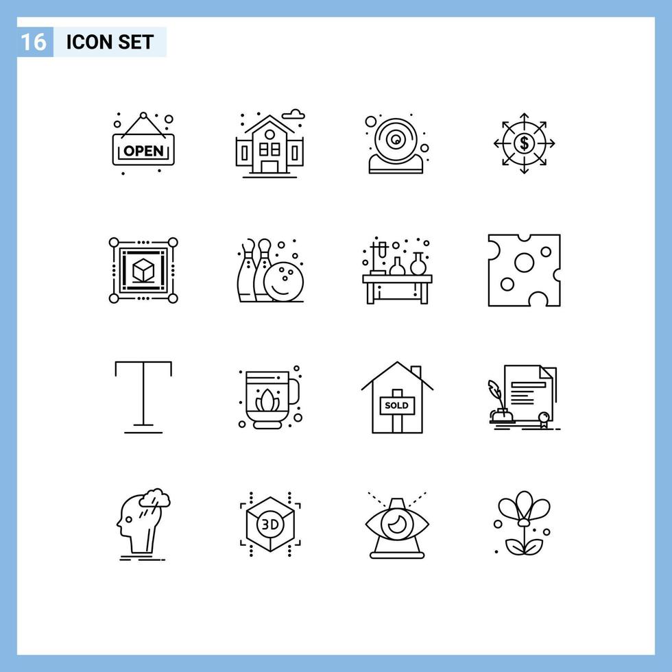 User Interface Pack of 16 Basic Outlines of bowling pine cube it box list Editable Vector Design Elements