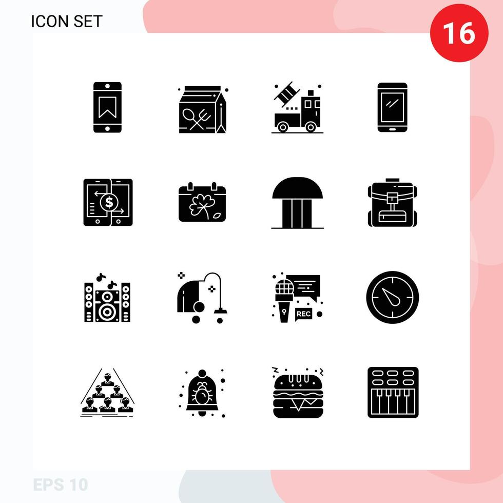 Pictogram Set of 16 Simple Solid Glyphs of mobile android car mobile phone Editable Vector Design Elements