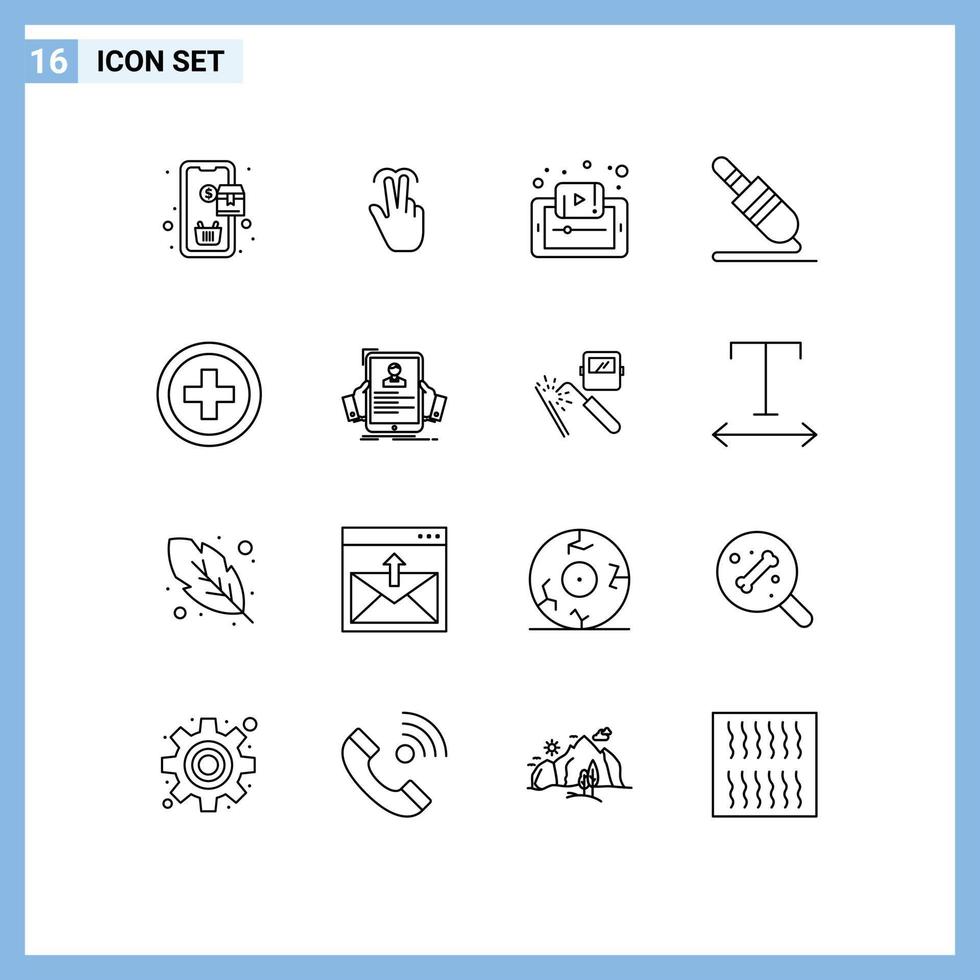 Modern Set of 16 Outlines Pictograph of pin audio cable tab tutorials mobile Editable Vector Design Elements