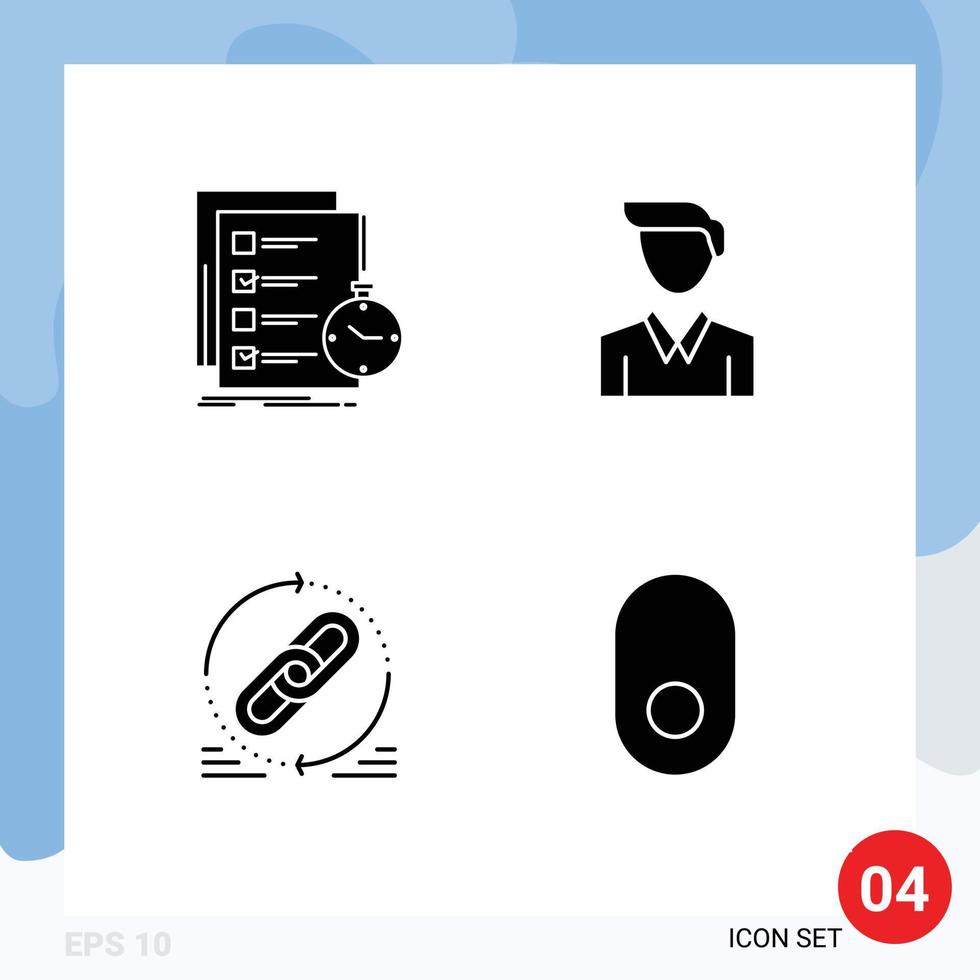 Editable Vector Line Pack of 4 Simple Solid Glyphs of todo hyperlink check man website Editable Vector Design Elements Free Vector