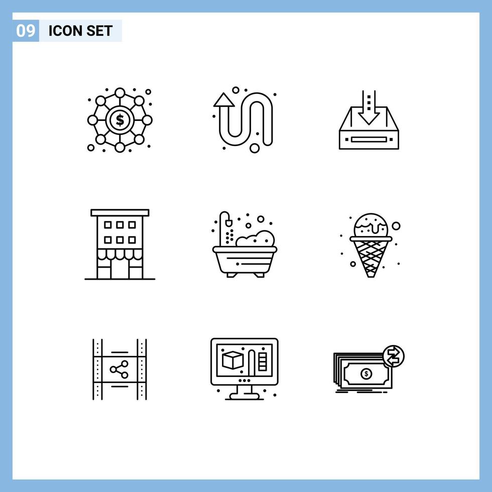 9 Universal Outline Signs Symbols of shop front house inbox buildings empty Editable Vector Design Elements Free Vector