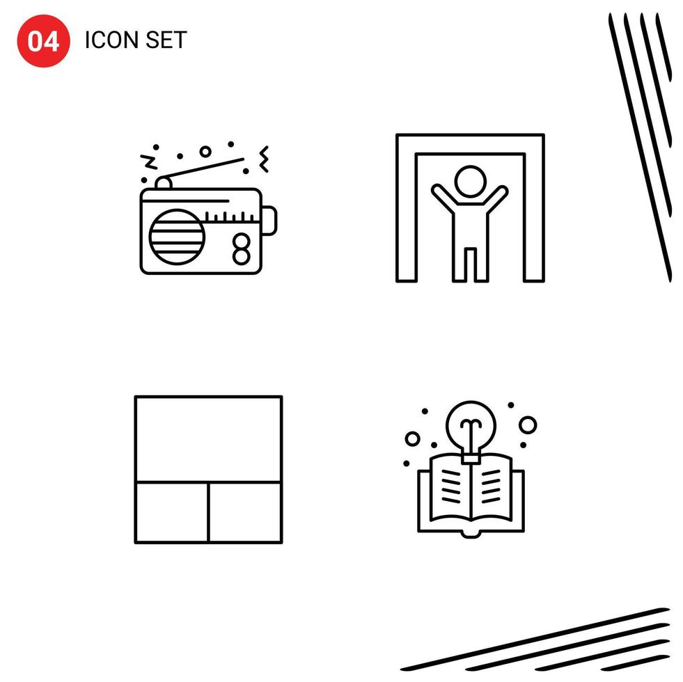 Mobile Interface Line Set of 4 Pictograms of radio layout technology scanner education Editable Vector Design Elements