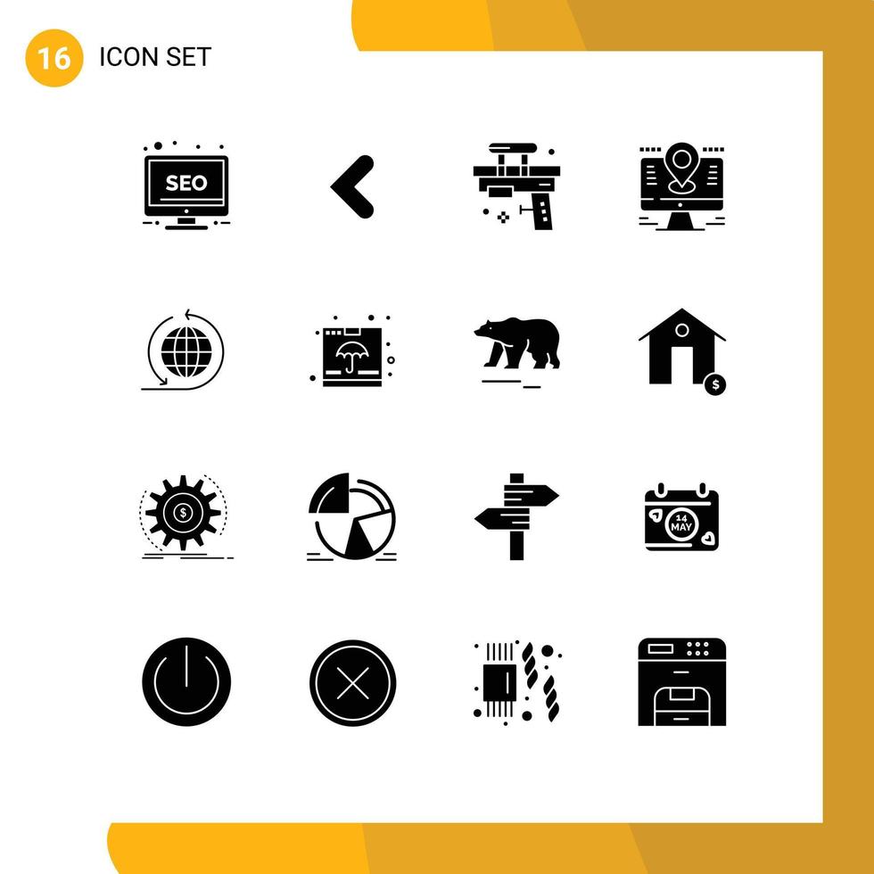 Editable Vector Line Pack of 16 Simple Solid Glyphs of pin location fun computer water Editable Vector Design Elements Free Vector