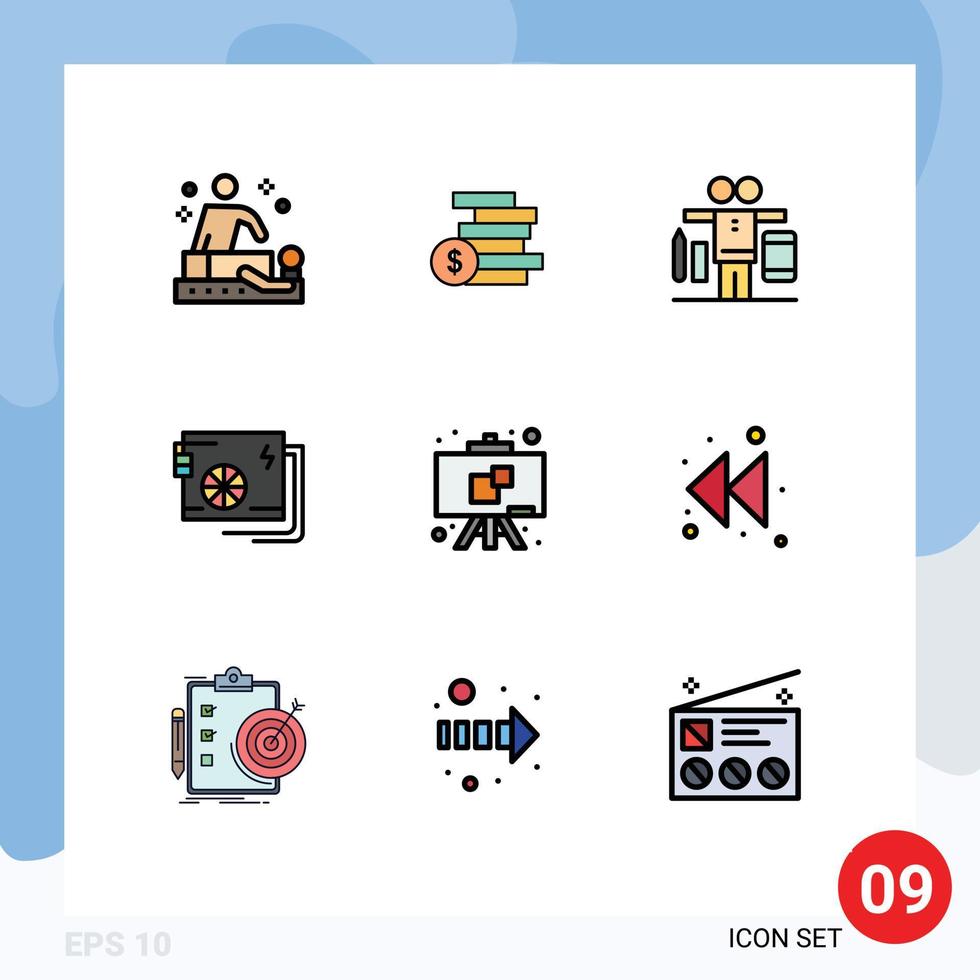 Set of 9 Modern UI Icons Symbols Signs for chalkboard power balance part ac Editable Vector Design Elements Free Vector
