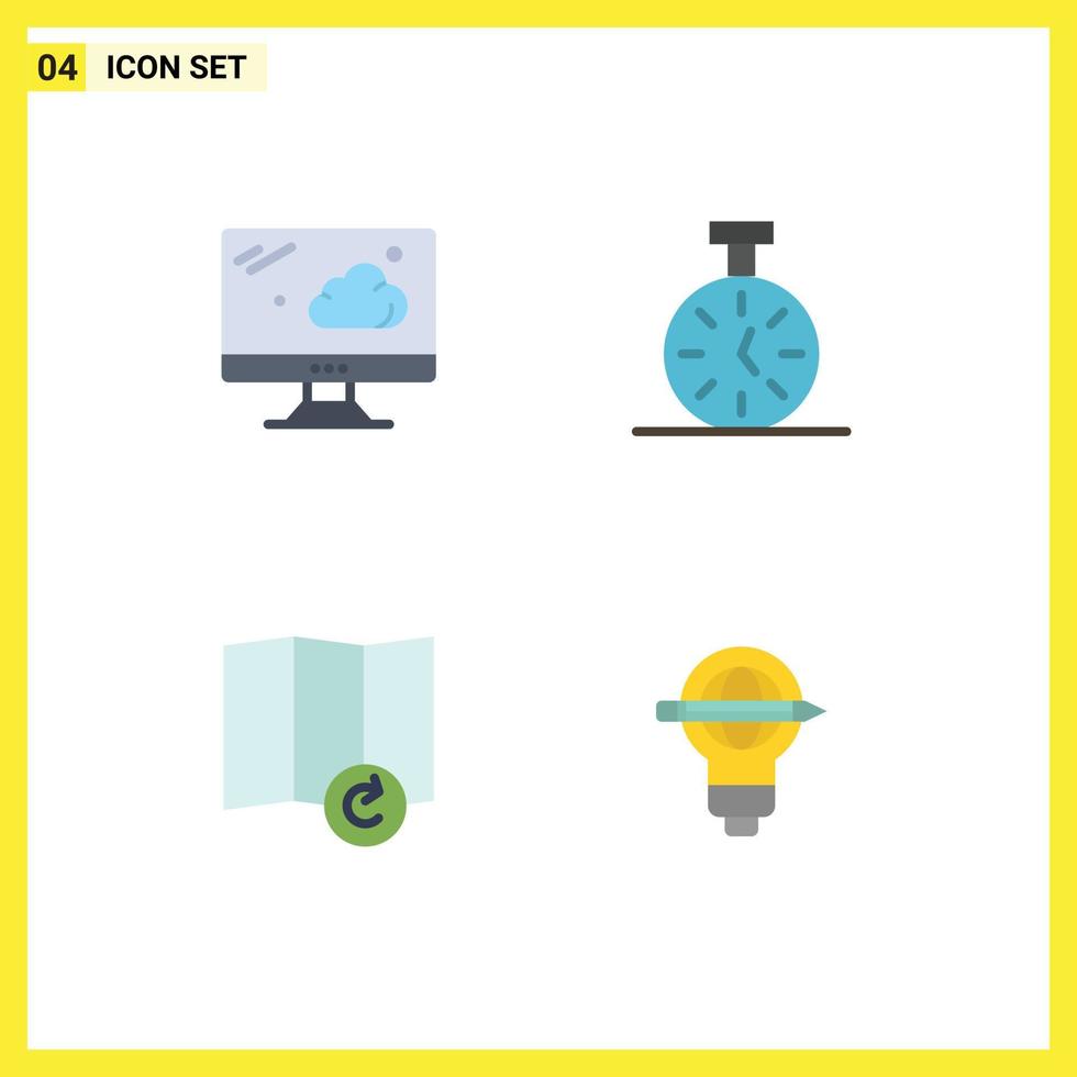 4 User Interface Flat Icon Pack of modern Signs and Symbols of cloud success stopwatch count globe Editable Vector Design Elements