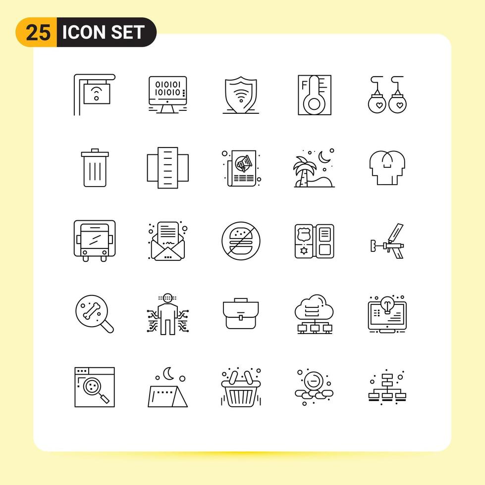 25 Universal Lines Set for Web and Mobile Applications accessories temperature internet security sun light Editable Vector Design Elements