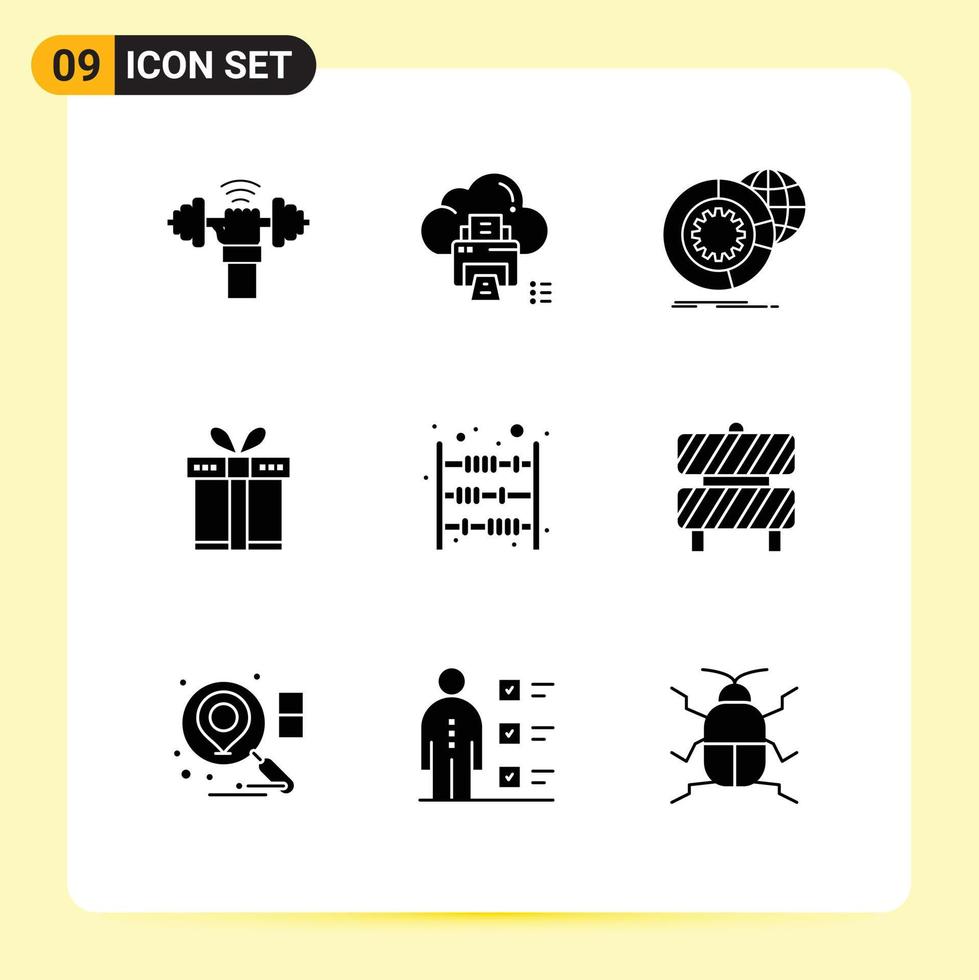 9 Universal Solid Glyphs Set for Web and Mobile Applications shopping gift printer services analysis Editable Vector Design Elements