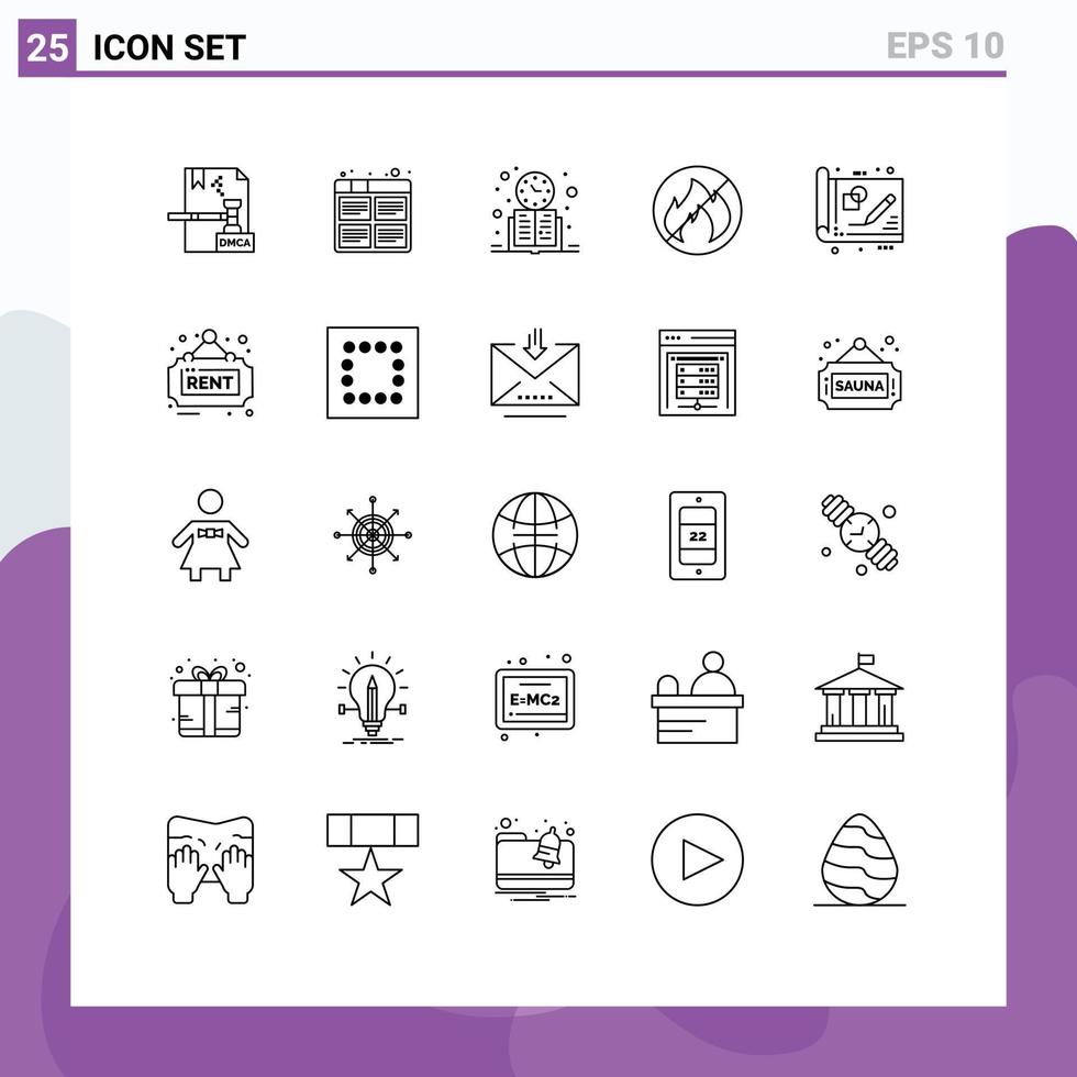 Editable Vector Line Pack of 25 Simple Lines of no camping process study time learning Editable Vector Design Elements