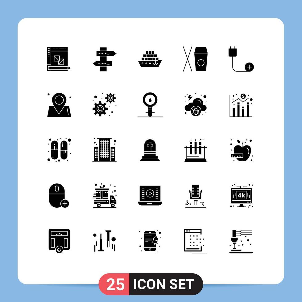 Pack of 25 Modern Solid Glyphs Signs and Symbols for Web Print Media such as devices computers cargo add chinese Editable Vector Design Elements