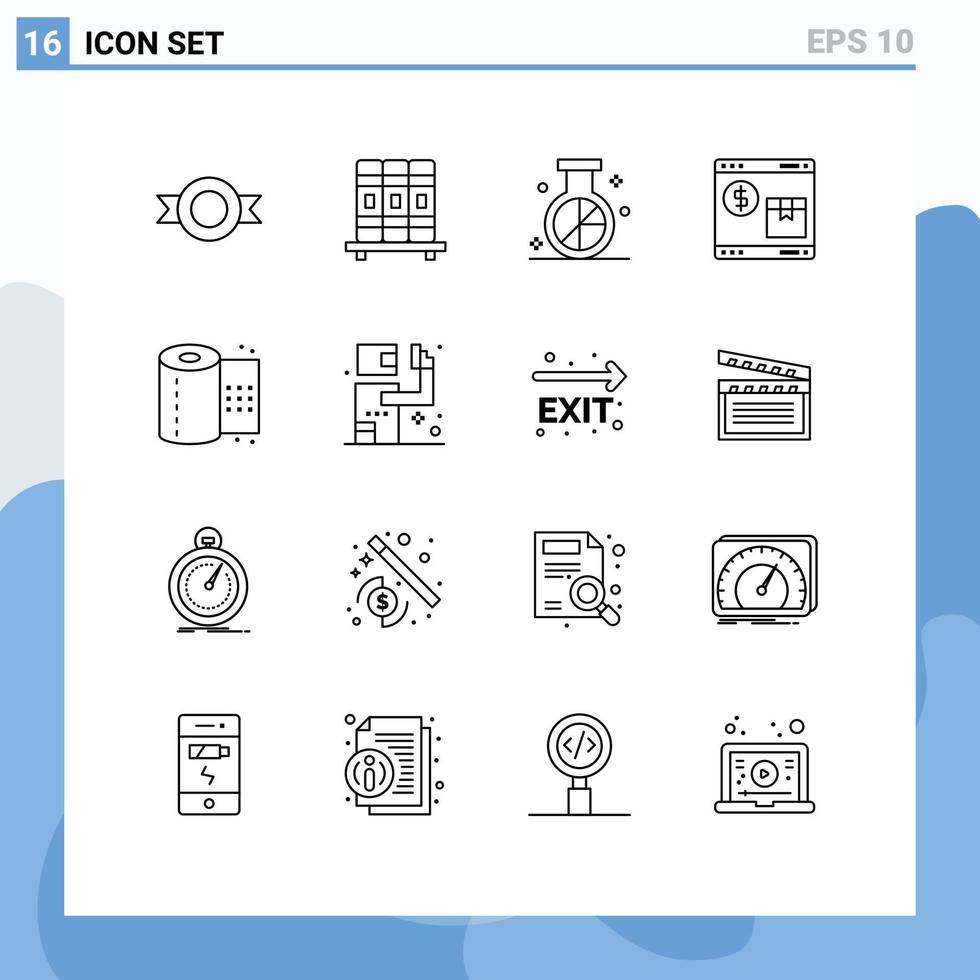 Pictogram Set of 16 Simple Outlines of paper web media shopping pack Editable Vector Design Elements