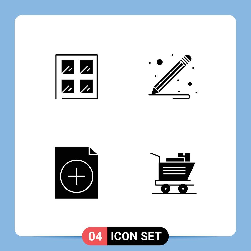 4 Solid Glyph concept for Websites Mobile and Apps window shopping pencil document Layer 1 Editable Vector Design Elements