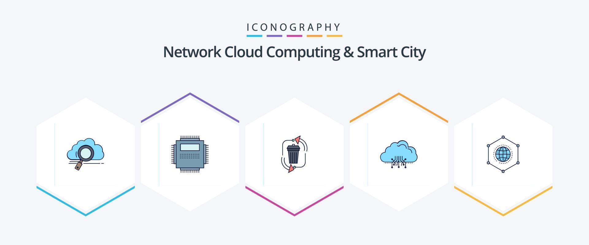 Network Cloud Computing And Smart City 25 FilledLine icon pack including cloud. recycle. computer. management. disposal vector