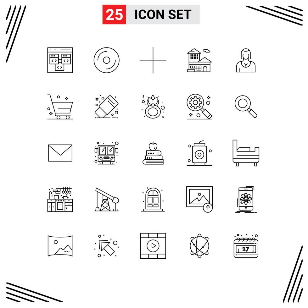 User Interface Pack of 25 Basic Lines of actress building media bank account plus Editable Vector Design Elements Free Vector
