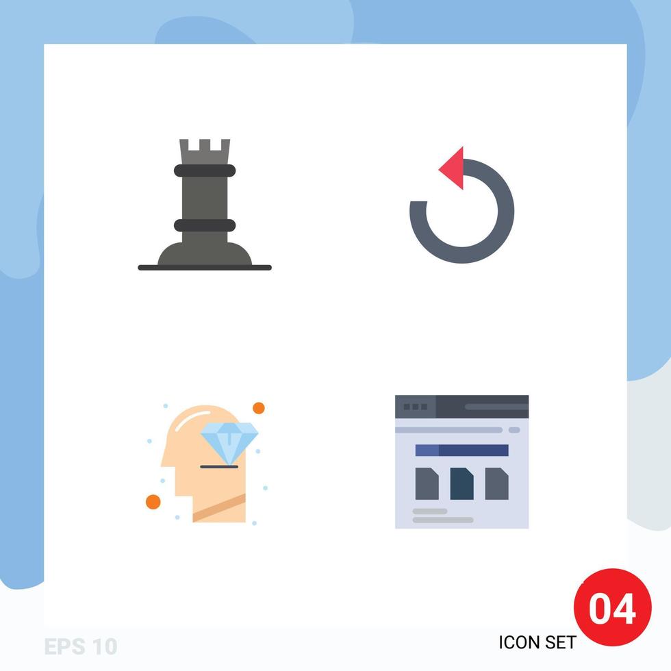 Mobile Interface Flat Icon Set of 4 Pictograms of chess mind refresh repeat page Editable Vector Design Elements