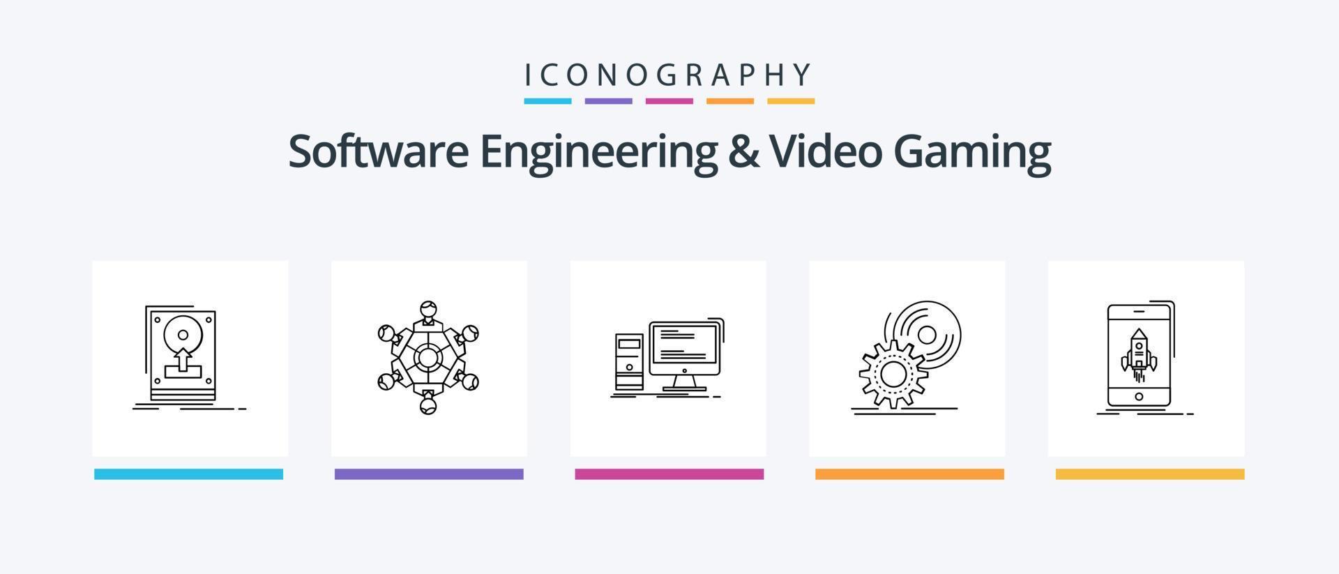 Software Engineering And Video Gaming Line 5 Icon Pack Including directory. archive. language. game. dlc. Creative Icons Design vector