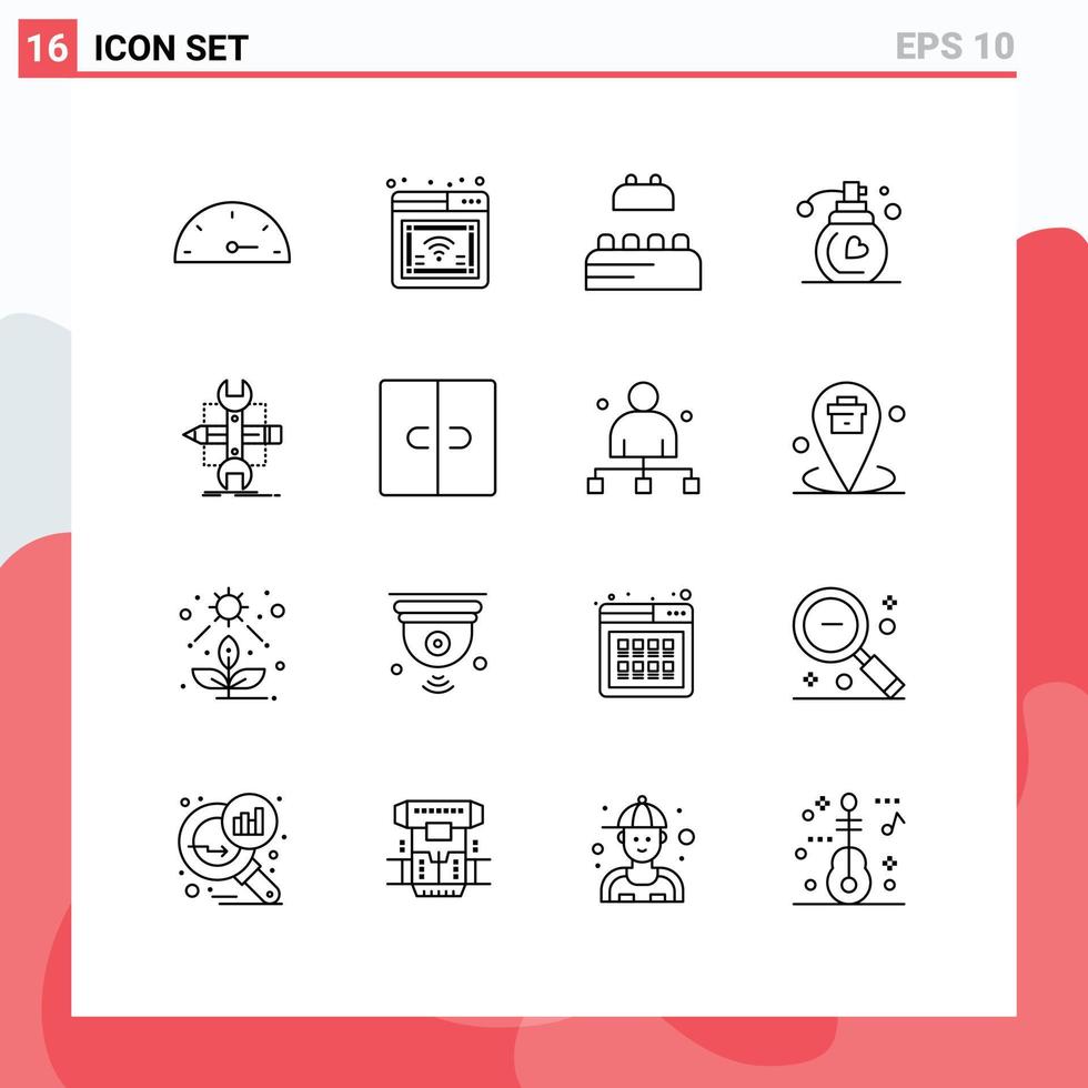 Modern Set of 16 Outlines Pictograph of tools develop constructor design makeup Editable Vector Design Elements