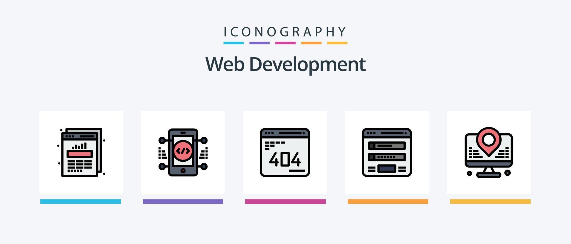 Web Development Line Filled 5 Icon Pack Including programming. com. develop. code. website. Creative Icons Design vector