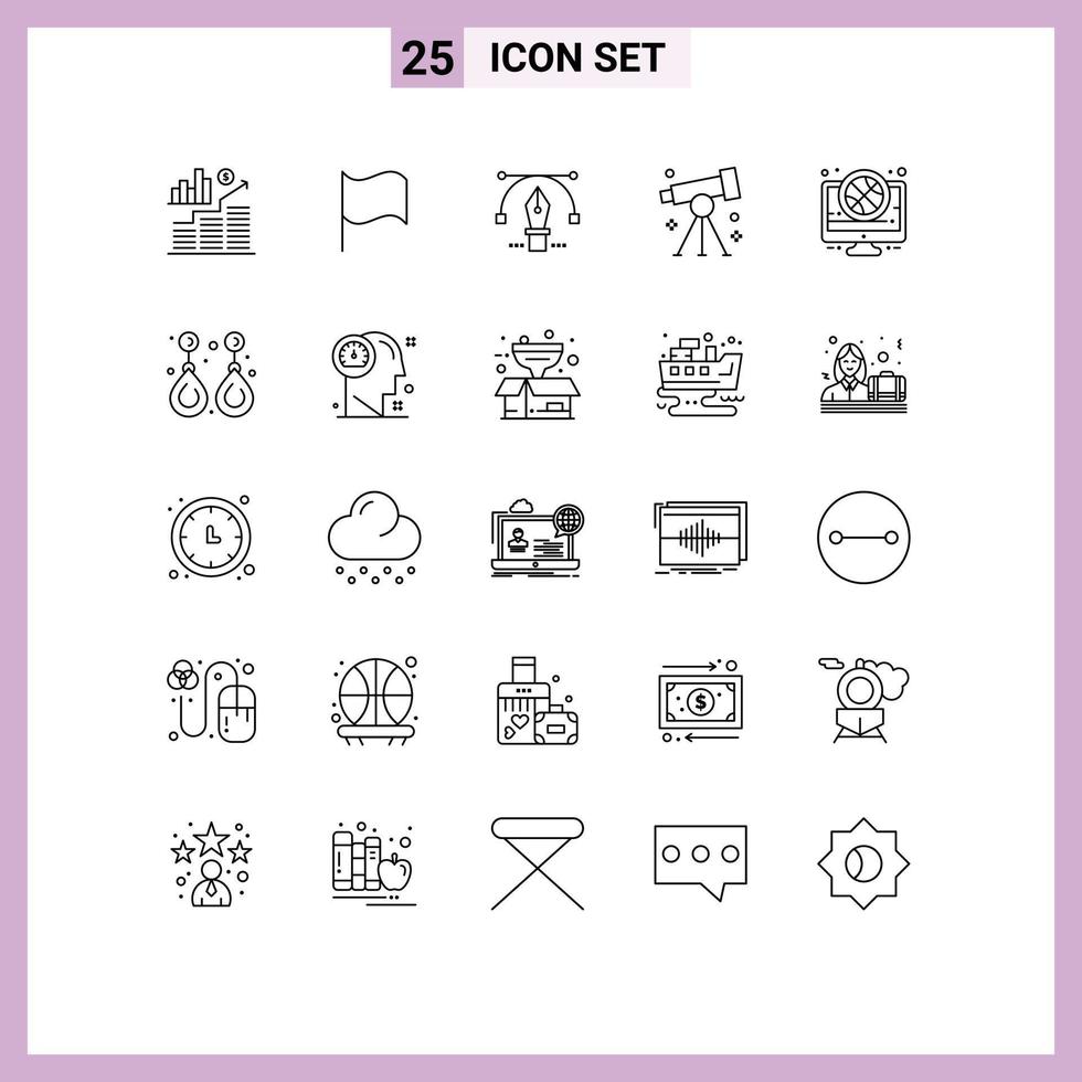 User Interface Pack of 25 Basic Lines of basketball study pencil science laboratory Editable Vector Design Elements Free Vector
