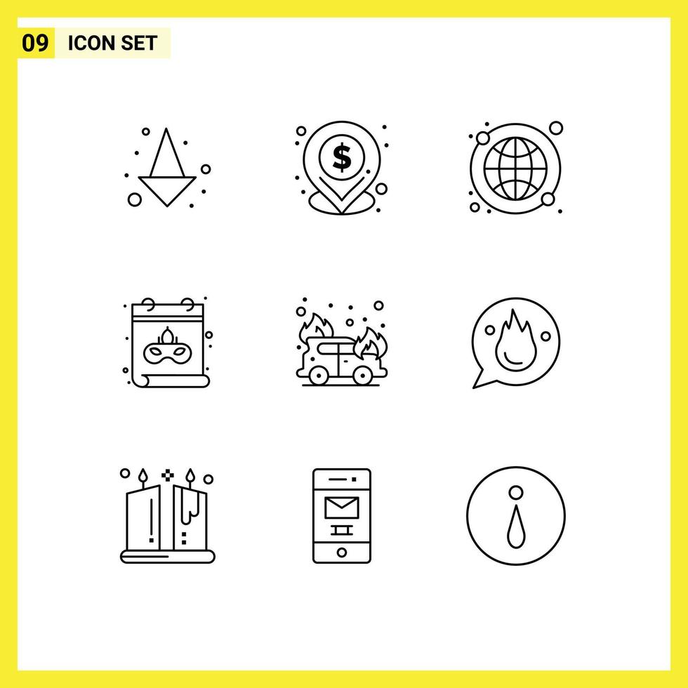 Editable Vector Line Pack of 9 Simple Outlines of career firefighter internet fire date Editable Vector Design Elements